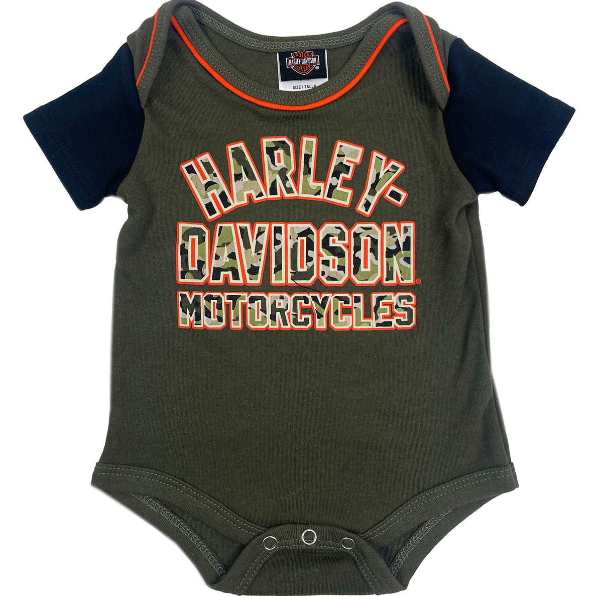 Harley-Davidson Baby Boys' Camo Print Raglan Short Sleeve Creeper