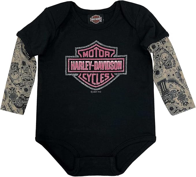 Harley-Davidson Baby Girls' Glitter B&S Mesh Tattoo Long Sleeve Creeper