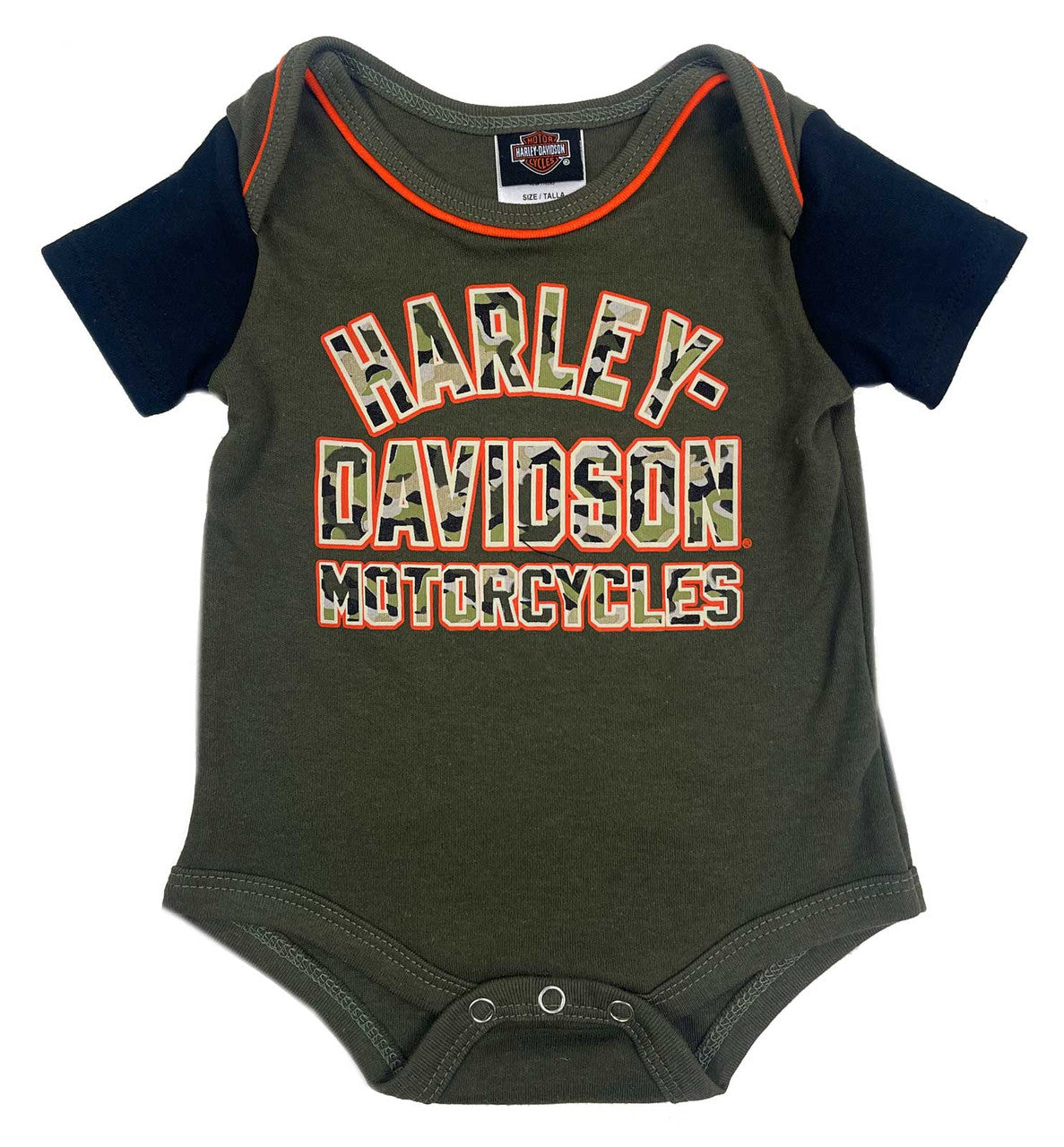 Harley-Davidson Baby Boys' Camo Print Raglan Short Sleeve Creeper