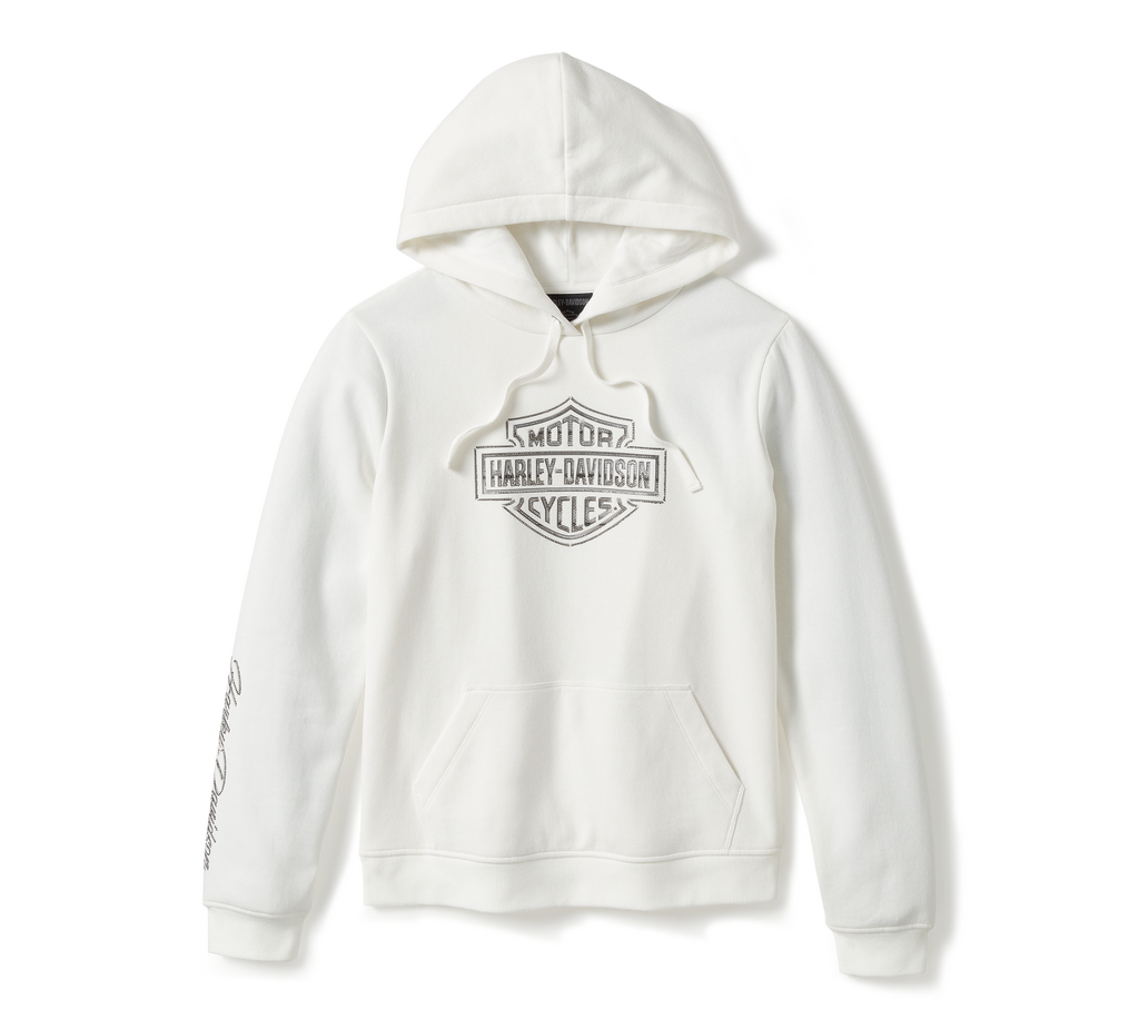 Add some shine to your sweatshirt collection with our Essential Bling Pullover Fleece Hoodie. It’s made to keep you cozy from a cotton/polyester fleece in a relaxed fit. We’ve stepped up its style with front and sleeve graphics adorned with embellishment.
