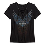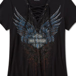 Harley-Davidson Women's Bling Dark Angel Short Sleeve Laced Front Tee - Harley Black