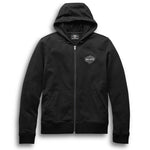 Body armor pockets at elbows, shoulders, and back. Padded back waist and shoulders. Snap-tab mandarin collar. Two-way zipper front. Zipper cuffs. 3M™ Scotchlite™ Reflective Material graphics. Vale Brothers armor for the shoulders & elbows has been discontinued by the manufacturer and is no longer available through Harley-Davidson.com.