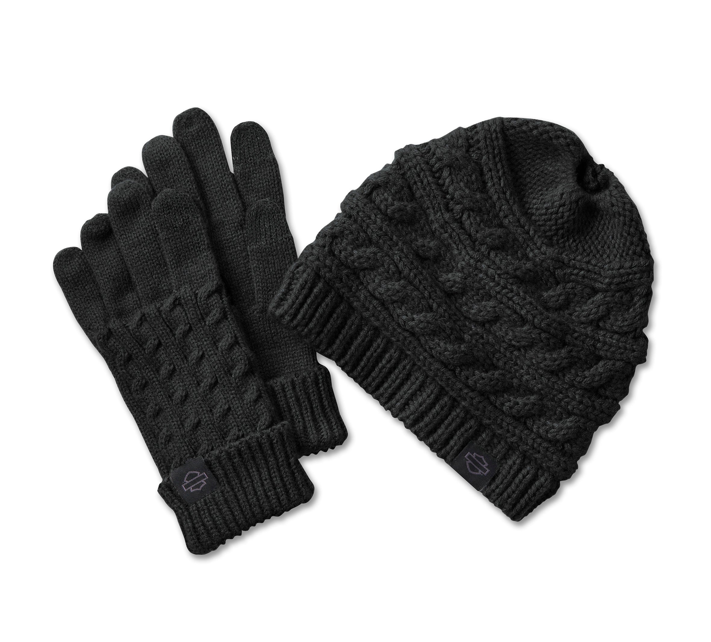 Harley-Davidson Ponytail Beanie Hat and Gloves Gift Set