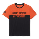 Vibrant moto style goes all in on our Essential Colorblock Top. It’s made from soft, breathable cotton jersey that’s enzyme stone washed for a well-worn look and feel. The contrast fabric piecing on this men’s t-shirt complements our embroidered graphics for a colorful, perennial H-D look.