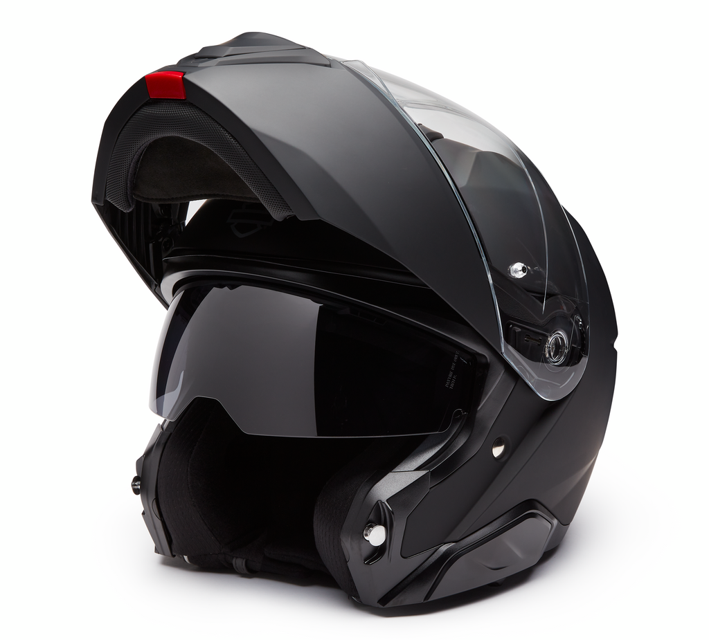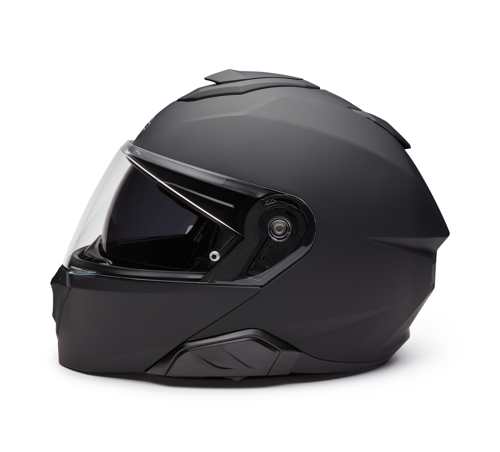 Take comfort, safety, and visibility to a whole new level in our H-D® Capstone Sun Shield III H35 Modular Helmet. It now has ventilation advancements that deliver full front-to-back airflow to flush heat and humidity out on every ride. This latest motorcycle helmet also has a new, dynamic multi-step sun visor that provides added convenience and visibility in varying light conditions. Its advanced polycarbonate composite shell provides a lightweight, superior fit that meets dual-certified DOT and ECE safety standards. This modular helmet is cleanly branded in both a Matte Black and Gloss Black finish for a versatile look that matches any of your other H-D® riding gear. Get familiar with all its specs below, then snag yours now…