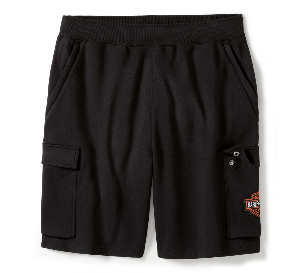 Give your sporty look an H-D upgrade with our Essential Fleece Cargo Short. Its classic, walking-short silhouette is cut from heavyweight cotton/polyester interlock for longwearing comfort and durability. Features a move-with-you waistband with drawstring, plus secure pocket space for stashing essentials. Finished with an embroidered hit of our most iconic graphics.