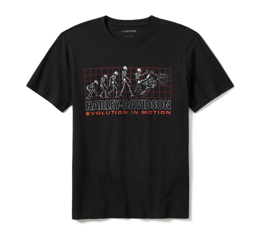 First there was man, then there was motorcycle…Our origin story comes alive on the Evolution Graphic Tee. Made for longwearing comfort from soft and breathable cotton jersey, this men’s t-shirt has a rib-knit neckline to help keep its shape. Its distinctive artwork in our iconic colors nods to Harley-Davidson’s “Evolution in Motion” legacy.
