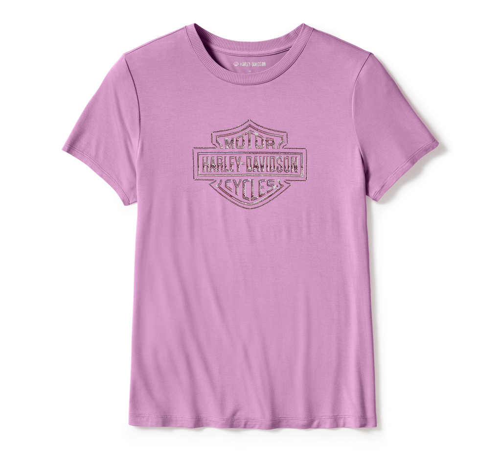 Add some moto-inspired sparkle to your casual look with our Essential Bling Crew Neck Tee. Its rayon/spandex jersey build is breathable, soft, and wrinkle-free (so it travels well in your saddlebag or suitcase). The embellished version of our most beloved graphics on this women’s t-shirt transforms it from standard into stunning.