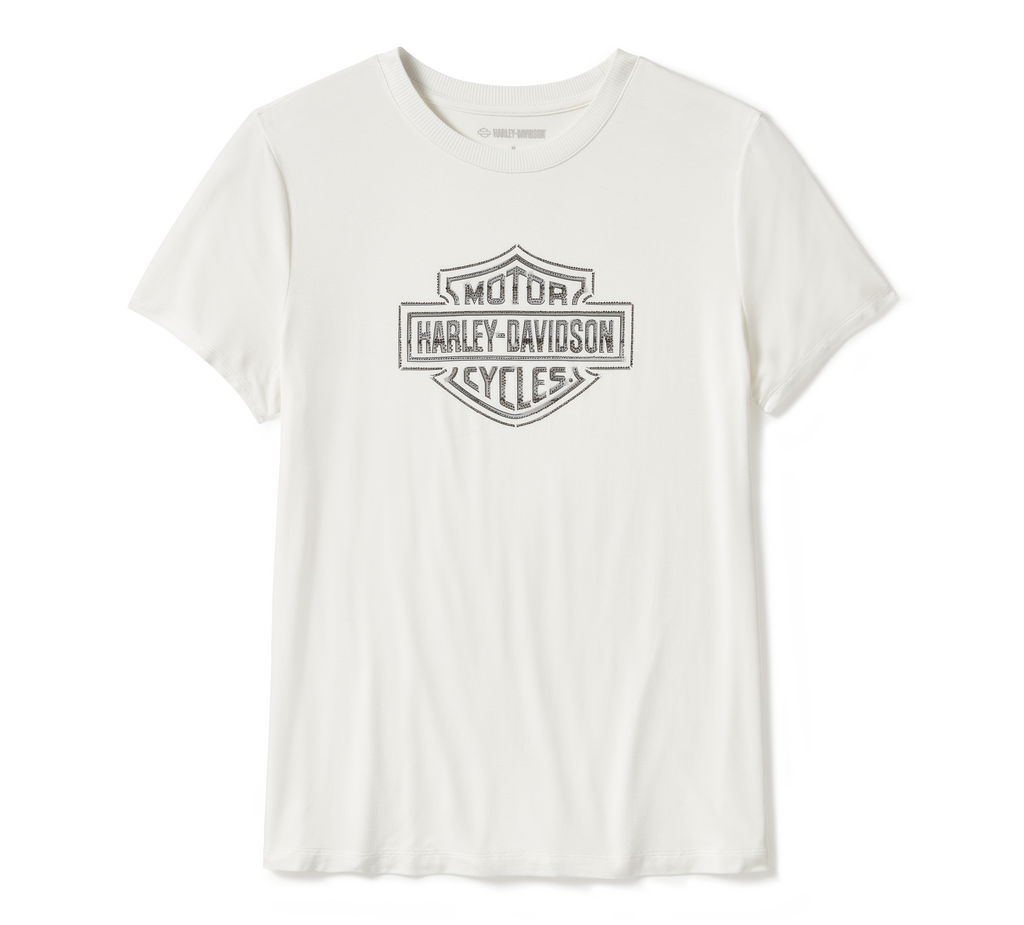 Add some moto-inspired sparkle to your casual look with our Essential Bling Crew Neck Tee. Its rayon/spandex jersey build is breathable, soft, and wrinkle-free (so it travels well in your saddlebag or suitcase). The embellished version of our most beloved graphics on this women’s t-shirt transforms it from standard into stunning.