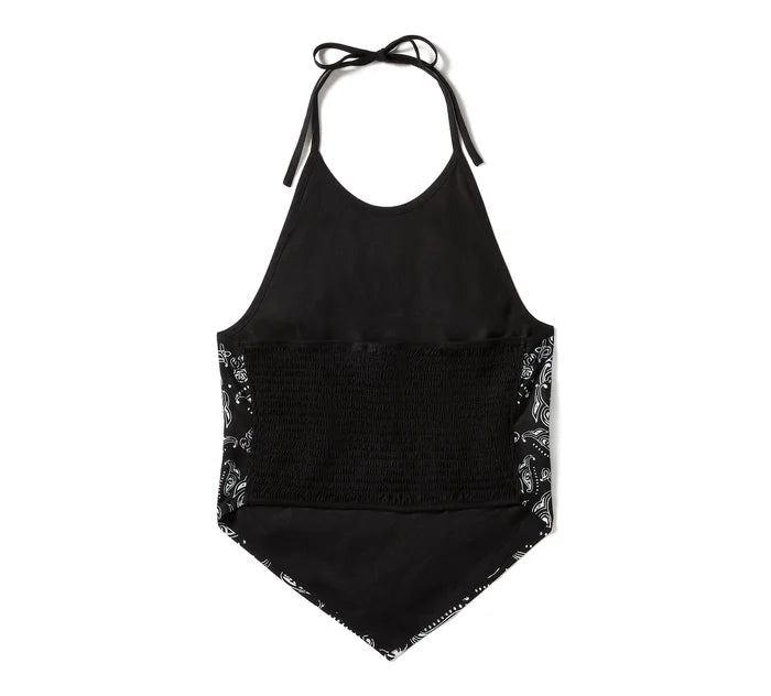 When temps are hot, so is your look in our Classic Paisley Bandana Halter. Its slim fit is made from lightweight viscose twill that’s washed for softness. This women’s halter top features easy-to-tie straps and elastic back smocking for longwearing comfort. It’s finished with a custom allover front pattern for a timeless-H-D look.