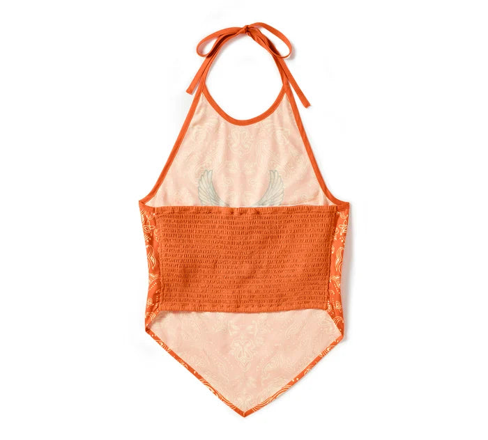 Make a moto-loving style statement in our Neon Eagle Paisley Bandana Halter. Its slim fit is made from lightweight viscose twill that’s washed for softness. This women’s halter top features easy-to-tie straps and elastic back smocking for longwearing comfort. The vibrant paisley pattern is a perfect backdrop for the soaring neon graphics that mirror our 1980s ride and rally tees.