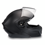Ventilation, protection, versatility, and much more are all built into the Limited-Edition H-D Evo X17 Sun Shield Modular Helmet. Its pregnated fiberglass construction is loaded with features like adjustable vents (at chin, top, and back spoiler), UVA/UVB protection on the sun shield and face shield, and a fully removable chin bar that instantly transforms from a modular to ¾ open-face configuration. Also has a tool-free ratchet system that properly seals your shield with an elliptical motion, and a moisture-wicking liner that’s easy to remove and wash. Minimally branded in a matte finish to pair well with the rest of your riding gear. Get familiar with the rest of its specs below, then order now while supplies last.