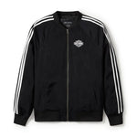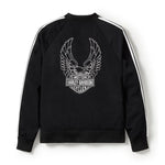 We gave a classic silhouette an H-D revamp on the Freedom Eagle Bomber Jacket. Its relaxed fit is made from lightweight yet rugged polyester/rayon twill for a silky hand feel that’s wrinkle resistant. This women’s outerwear features top-applied sleeve striping for a hit of contrast, and rib knitting for added durability and stretch. Finished with embroidered graphics gracing the front and going all-in on back. Zoom closer to see that the eagle’s wings on back resemble exhaust pipes—proof that nothing goes better together than soaring freedom and the open road.