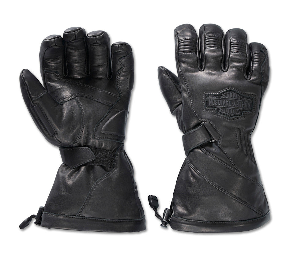 We’ve made a longstanding rider favorite better with our Circuit II Waterproof Leather Gauntlet Gloves. Built for maximum coverage and comfort from cowhide leather with improved waterproofing and stay-warm 3M™ Thinsulate™ insulation. These full-finger motorcycle gloves that cover your wrists also feature a padded palm to minimize road rattle and a goggle wiper for better visibility. Minimally branded for a versatile look that goes with any of your H-D® riding jackets.
