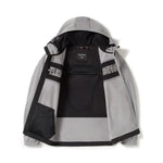 Direct embroidery. Zip-down hood to reduce drag while riding.