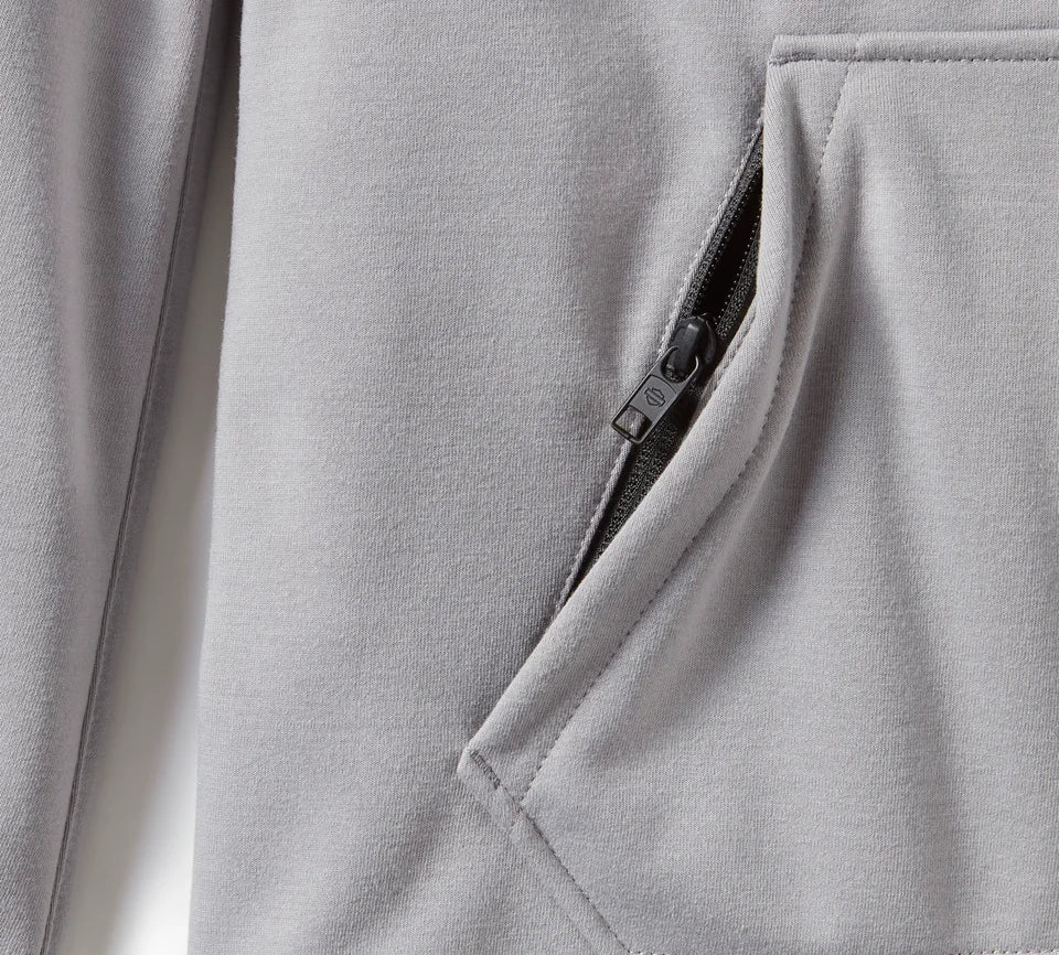 Kangaroo-style, hand-warmer pockets with hidden zipper stash